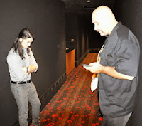 She stood still for a moment, burying her face in her hands trying not to cry at the sight of one of her idols coming to see her movie.
